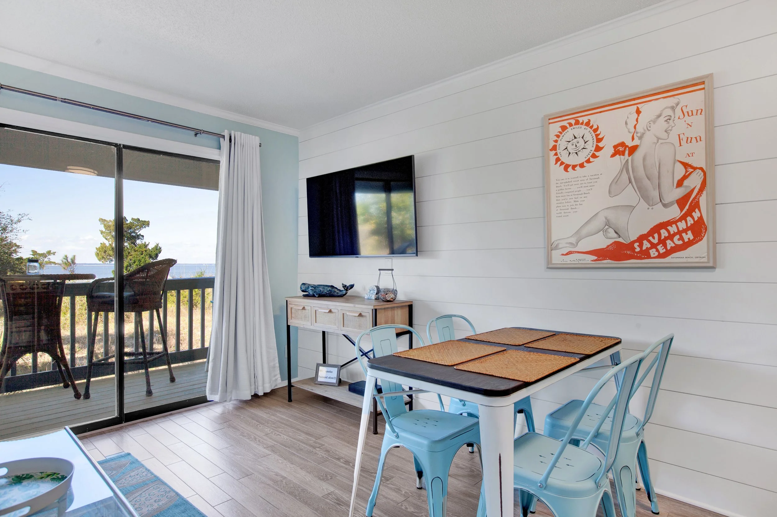 Experience the charm of coastal living at Sun N Fun, a relaxing one-bedroom condo located in the Savannah Beach & Racquet Club on beautiful Tybee Island, Georgia. This inviting retreat is perfect for couples or small groups seeking a peaceful beach getaway. Enjoy ocean views from the living room and private balcony, where you can sip your morning coffee and watch ships drift by or dolphins play in the surf. The condo features a comfortable king bedroom, a sleeper sofa, and a fully equipped kitchen with everything you need to prepare meals. The bright, coastal décor and open layout create a cozy yet spacious atmosphere, ideal for unwinding after a day of exploring the island. With fresh linens, a flat-screen TV, and all the comforts of home, Sun N Fun offers the perfect blend of relaxation and seaside adventure.