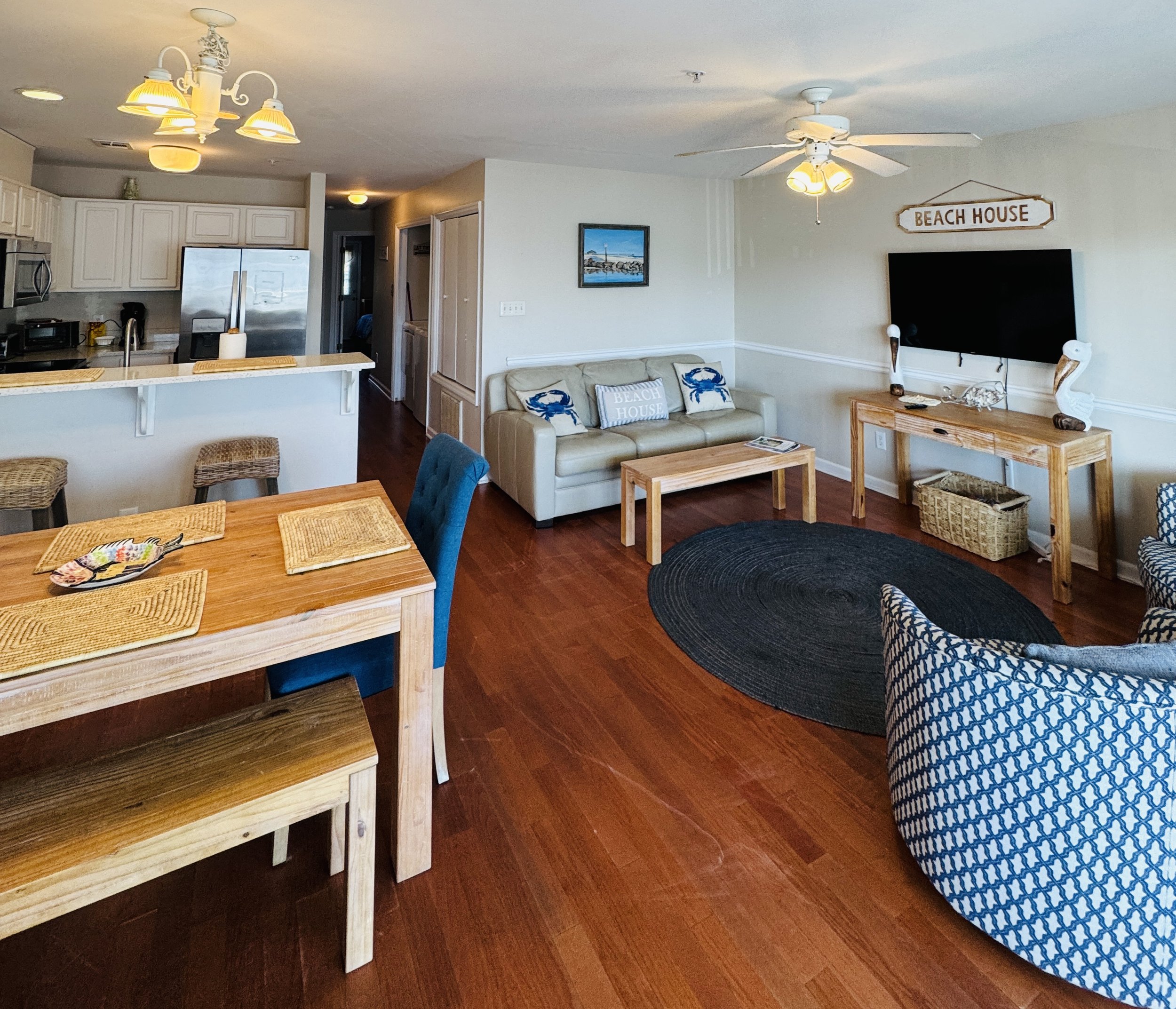 Wake up to the sound of the waves and a view of the Atlantic at Saltwater Vista, a beautifully appointed 2-bedroom, 2-bath condo just steps from the beach on Tybee Island’s sought-after 17th Street. With two king bedrooms, a private balcony, and everything you need for a relaxing coastal escape, this ocean-view retreat is perfect for couples, families, or friends.